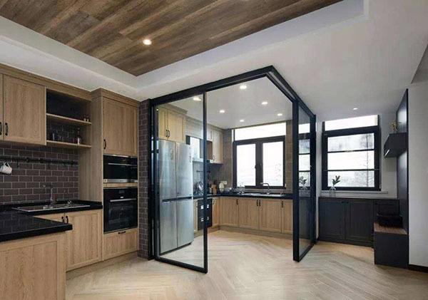 第一种:在厨房和其他区域之间设置通透的玻璃墙隔断。