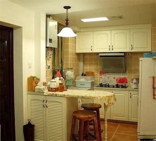 很多家庭不想把厨房全部封闭起来,往往会选择半开放式的设计形式,在厨房和其他区域之间采用珠帘、吧台等形式进行适当隔断。但这种隔断形式不会起到很好的油烟隔绝的作用。如果希望隔绝油烟的话,可以把厨房做成局部开放,把厨房大部分封闭起来,留出窗台大小的空间和餐厅相连,做饭时可以采用玻璃或者帘子把窗口遮挡起来,等做完饭后油烟扩散干净了再把遮挡物拿开。