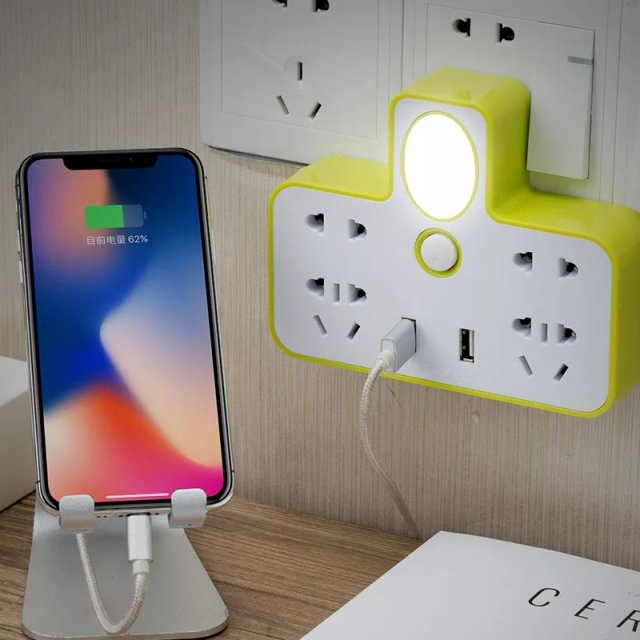 这款插座既是多插孔的插座也是贴心的小夜灯。独立的小夜灯开关,贴心设计一键控制,让你可以想开就开想关就关。晚上行动更方便,微光入睡更安心。
